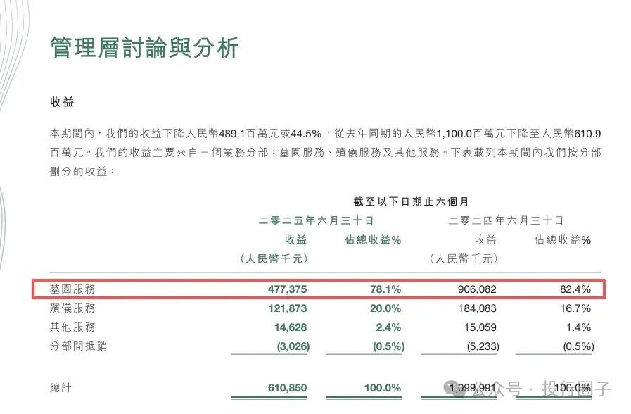 2025年8月的中报,成为整个故事的转折点——甚至是一记闷棍。上市12年,福寿园首次出现净亏损,金额达2.6亿元人民币。