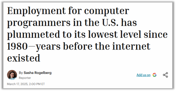 “初级程序员替代率已超85%,国内基础编程岗位需求同比下降28%。”