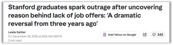 斯坦福大学2025届计算机系学生因找不到工作,只能选择延毕或多读一年研究生。
