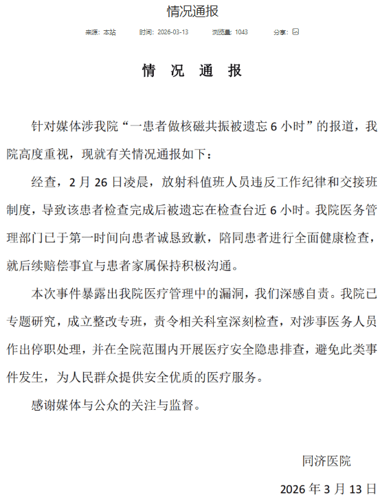 同济核磁事件是一次警示,提醒管理者完善交接制度,将流程写入制度、嵌入系统,强化员工补位意识,避免公信力受损。