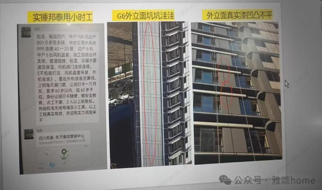 邦泰东方雅颂因业主的文言文投诉书《檄四川邦泰书:东方雅颂业主泣血陈情,誓捍家园》出圈,业主自2024年多次维权,涉及实景示范区不符预期、材料等级低、工地开放日延迟等质量问题。