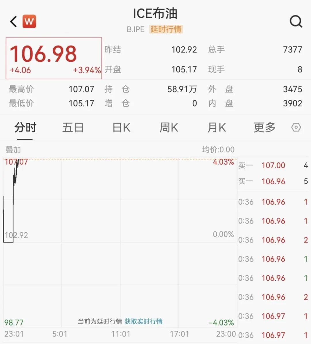 受此消息影响,原油期货价格直线上升,布伦特原油期货涨幅一度扩大至4%,当前报106.98美元/桶。