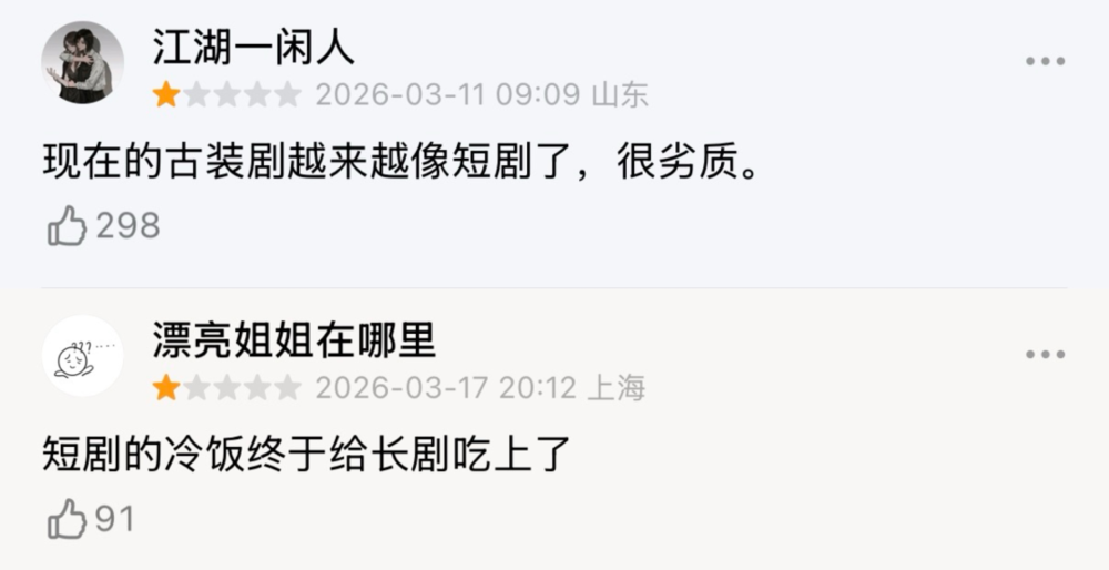“长剧向短剧靠拢”的趋势已经到来,创作者的选择本无对错。但在目前观众的主流评价里,“像短剧”显然还是负面色彩多于正面认可的标签。