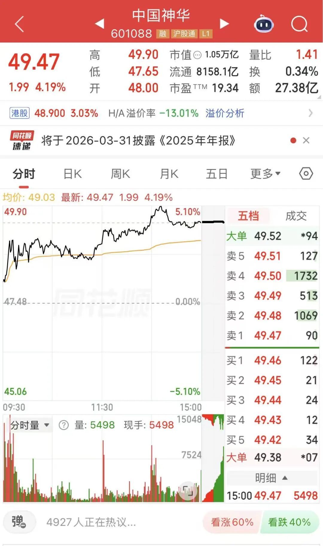 煤炭板块今日走势强劲,中国神华股价一度上涨近5%,创下历史新高。