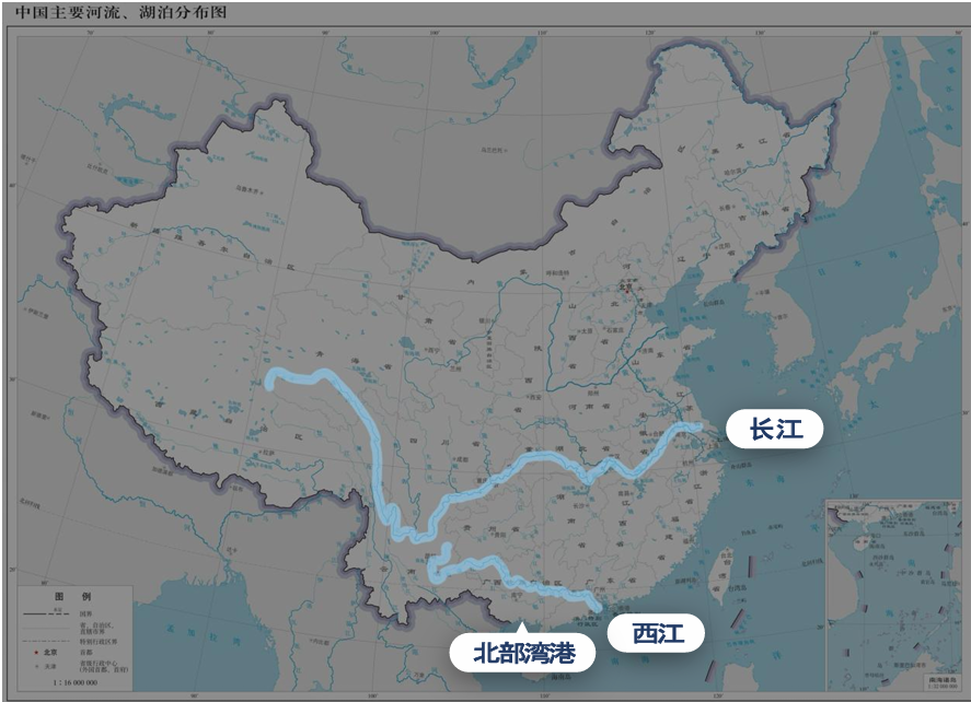 广西自身情况特殊:首府南宁距北部湾仅100多公里,但流经南宁的西江却在800多公里外的广东珠江三角洲入海。