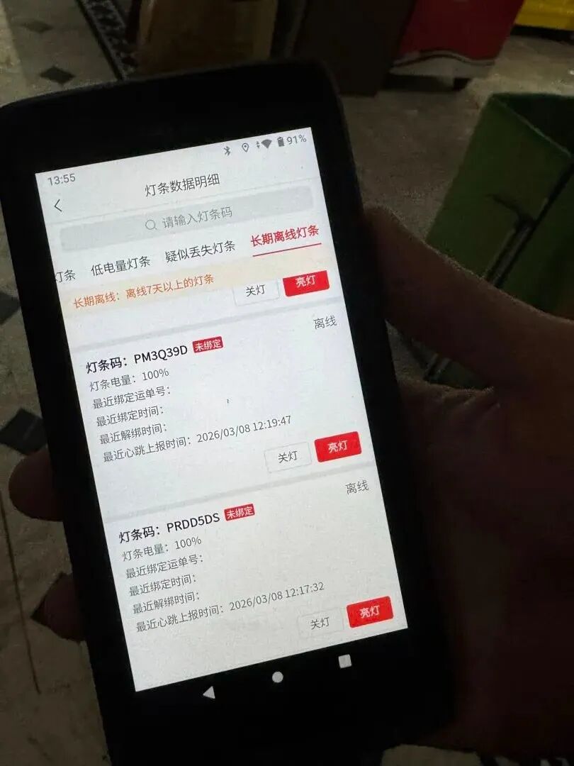 与此同时,夹在快递包裹上的灯条