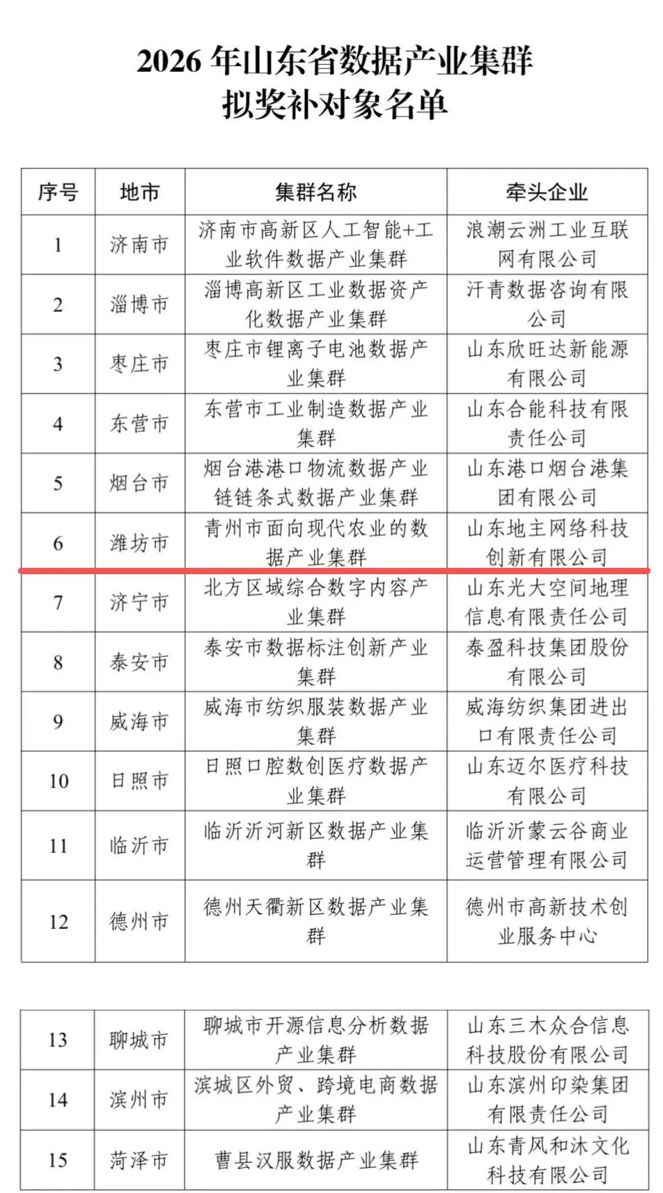 原标题:《山东公示2026年数据产业集群拟奖补对象,潍坊1个集群入围》