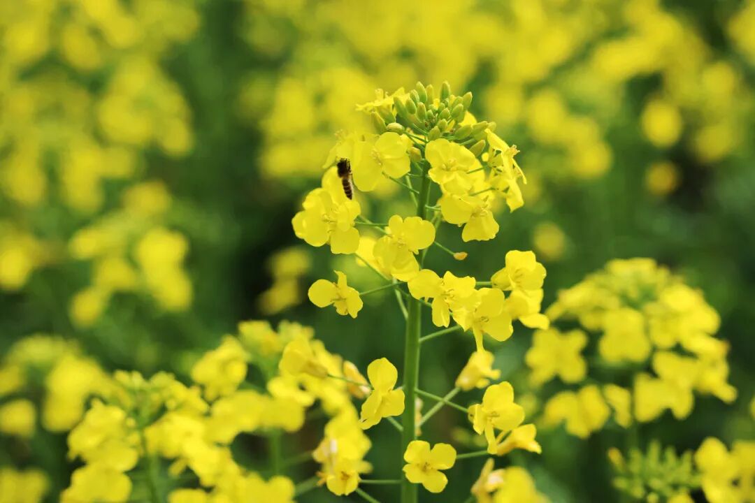 蜜蜂是这片花海最忙碌的“子民”,嗡嗡声为盛事伴奏;偶有蝴蝶翩跹,翅膀沾着金黄花粉,如会飞的花瓣在花间起舞。