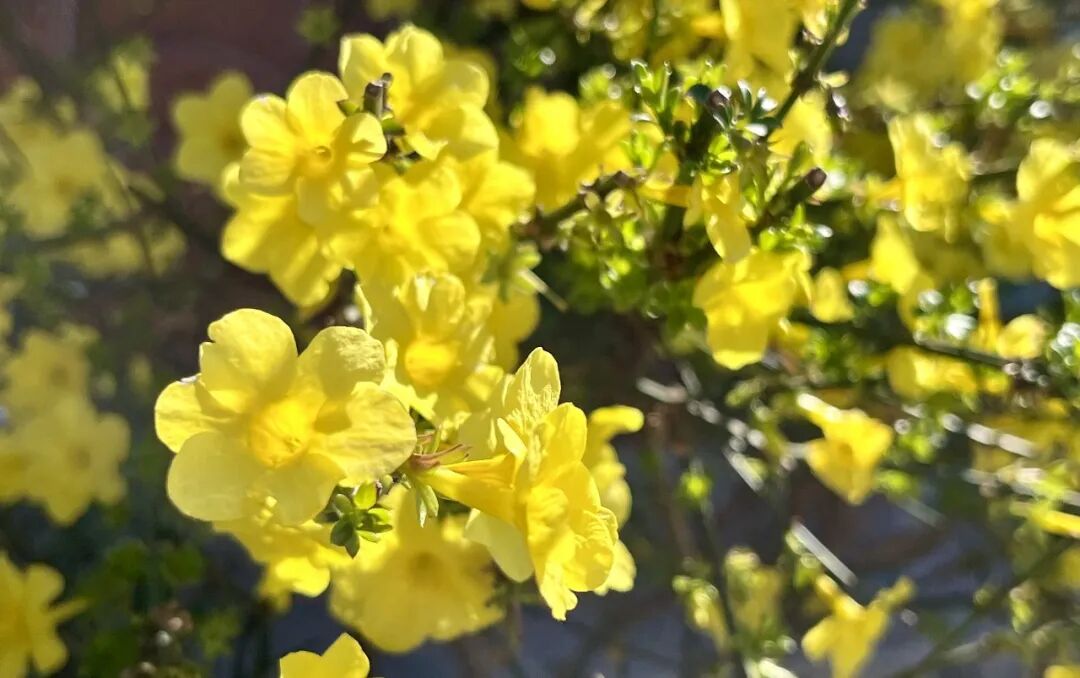最动人的是花瓣上挂着的雨珠,晶莹剔透映着天光,让每朵花都楚楚可怜,似将一冬的秘密诉与春天。
