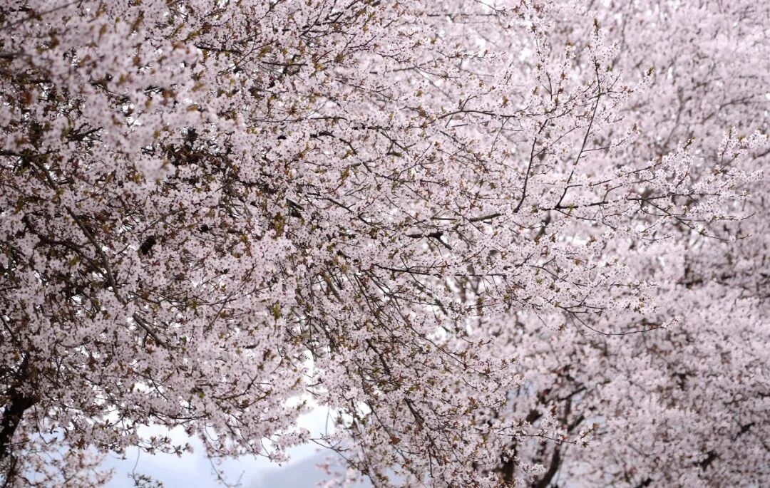 每根枝条都被繁花压弯,密密匝匝的花朵似一场不愿消融的春雪。