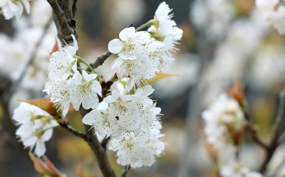 那一树树樱桃花,开得肆意而热烈。