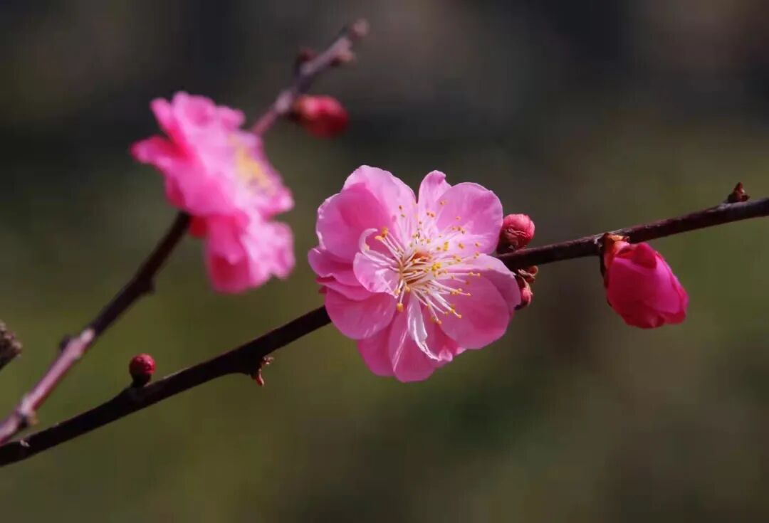 红得热烈、粉得娇羞、白得清绝的梅花,静静绽放在路旁,不争不抢,自顾自美丽。