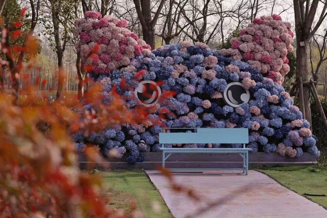红色热烈,粉色温柔,黄色明媚,紫色优雅,各色花朵汇聚成一片绚烂花海。