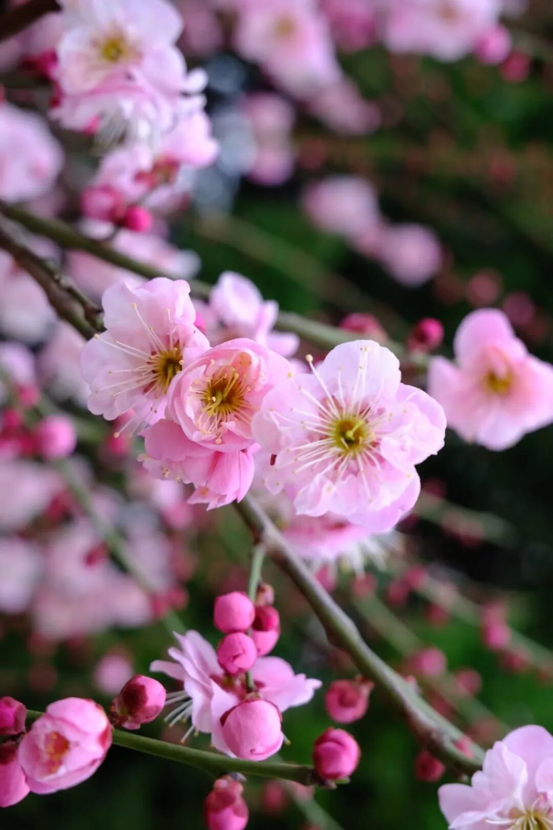 梅花、白玉兰、粉玉兰、山茶花、迎春花、紫叶李、杏花、海棠花