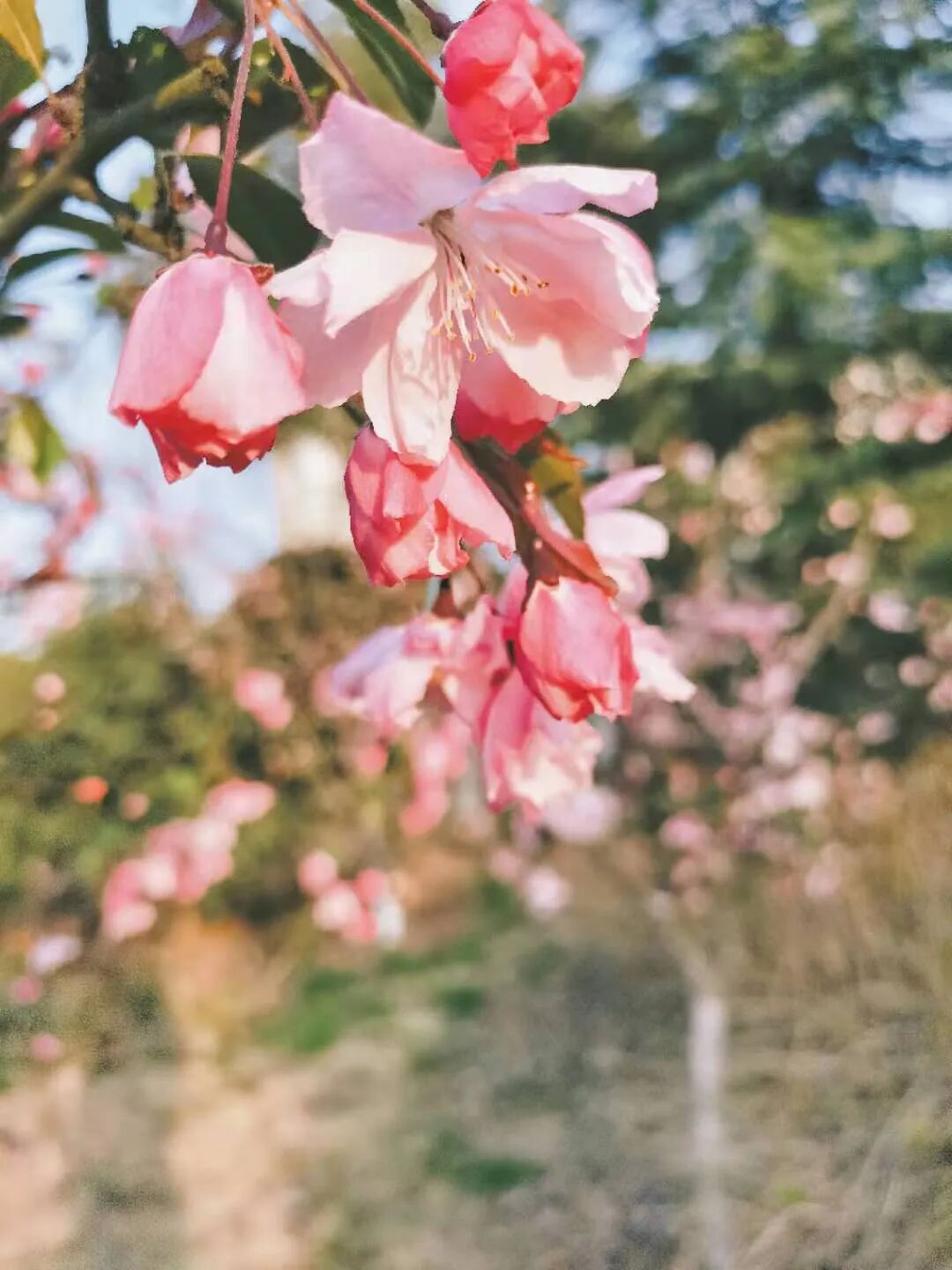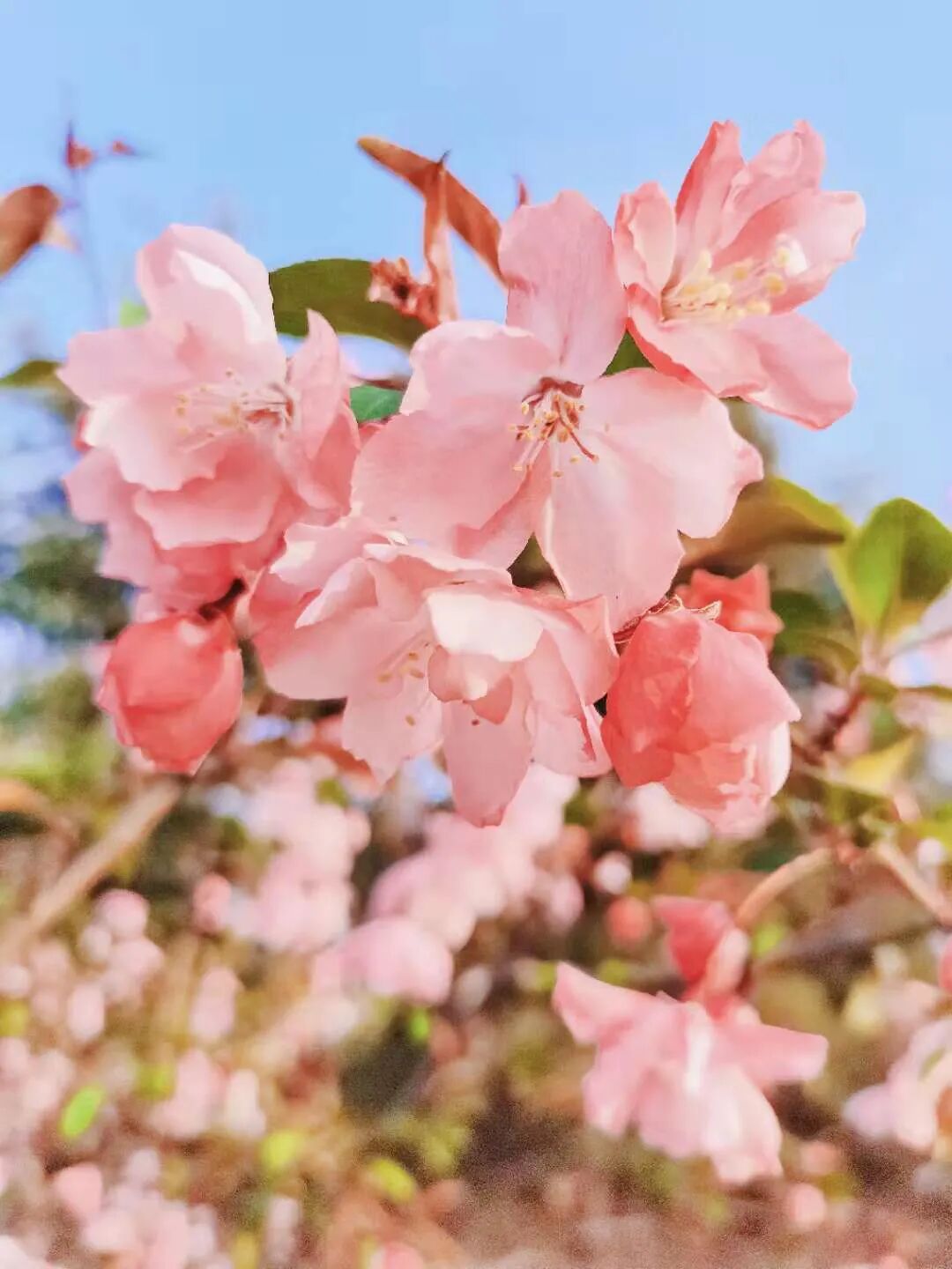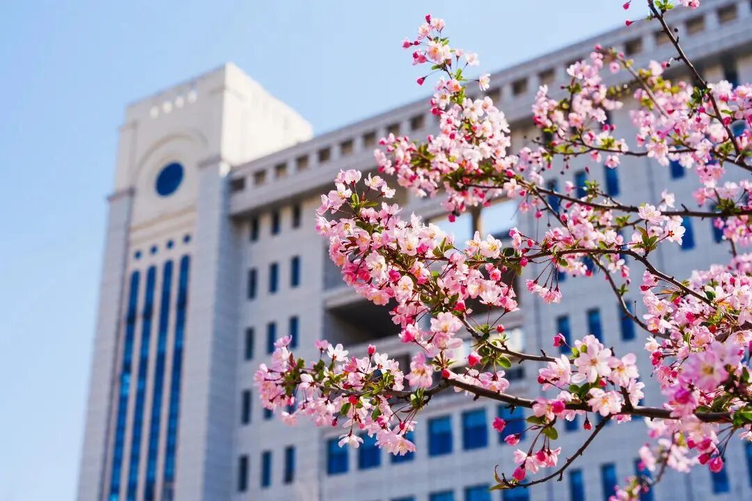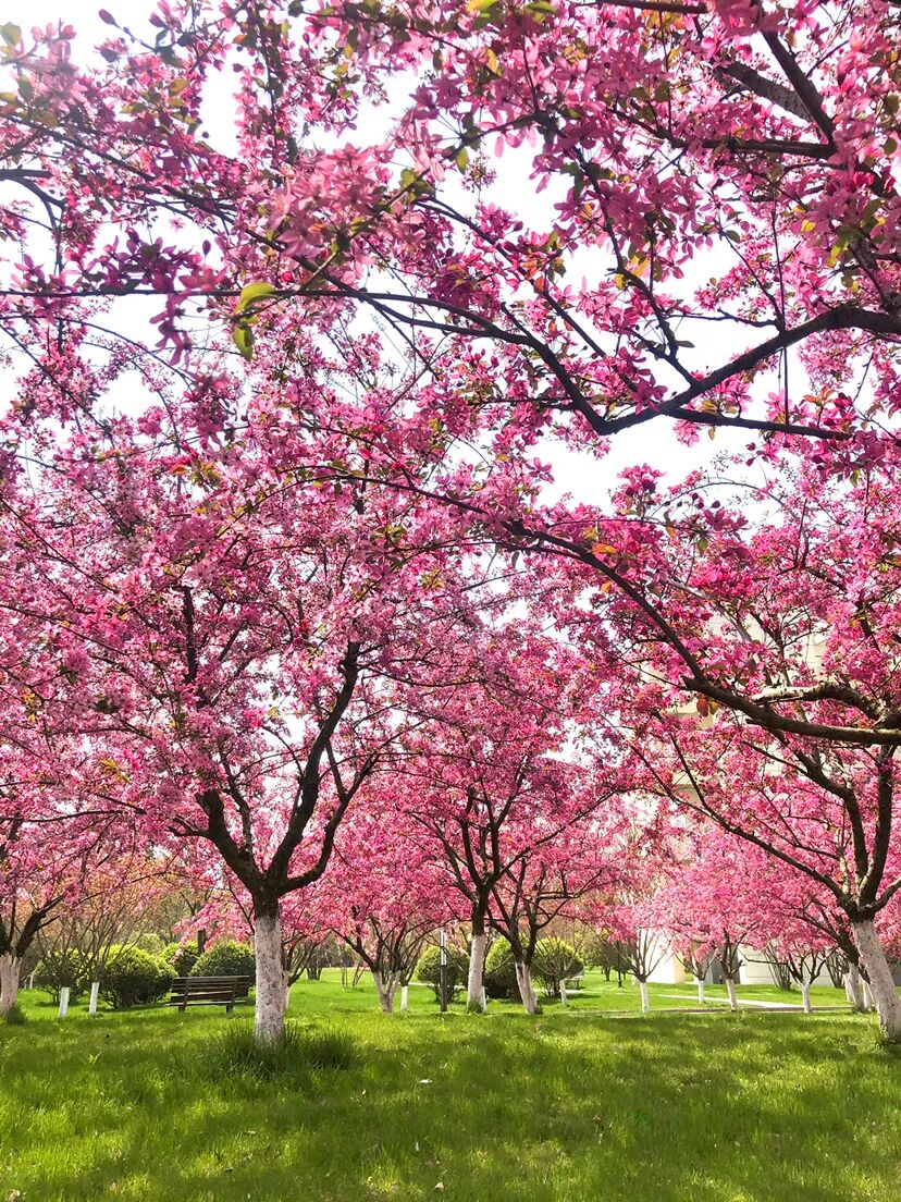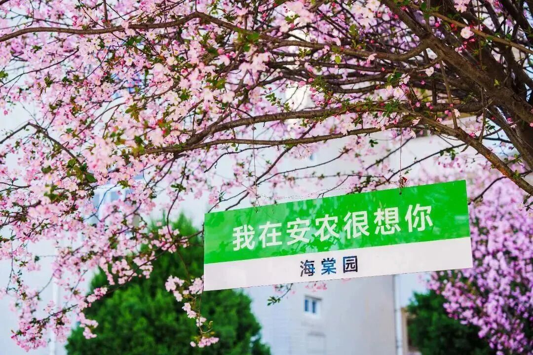 海棠花的春色布满枝头,绯红的颜色染红了安徽农业大学的校园。花开时节,微风吹过,花瓣轻轻颤动,仿佛在诉说春日的温柔。