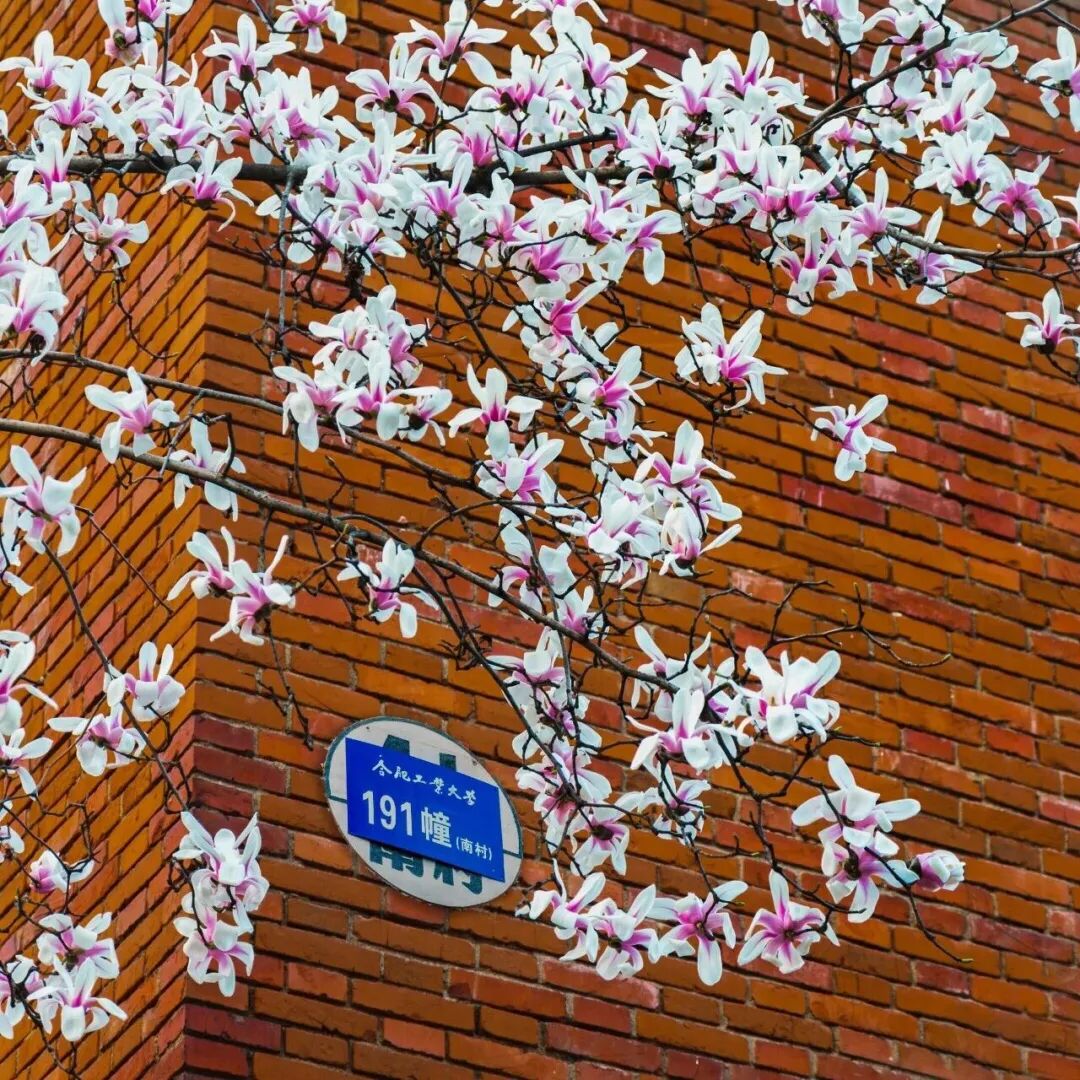 春风轻吹,合肥工业大学的校园里,枝头悄悄挂满了细碎的花朵。红砖楼旁的玉兰花如期开放,满树繁花与古朴的红砖墙相互映衬,历史的沉静与春日的浪漫相遇,晕染出柔和绚烂的画面。