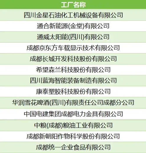 ▲2025年度绿色工厂名单(成都部分)