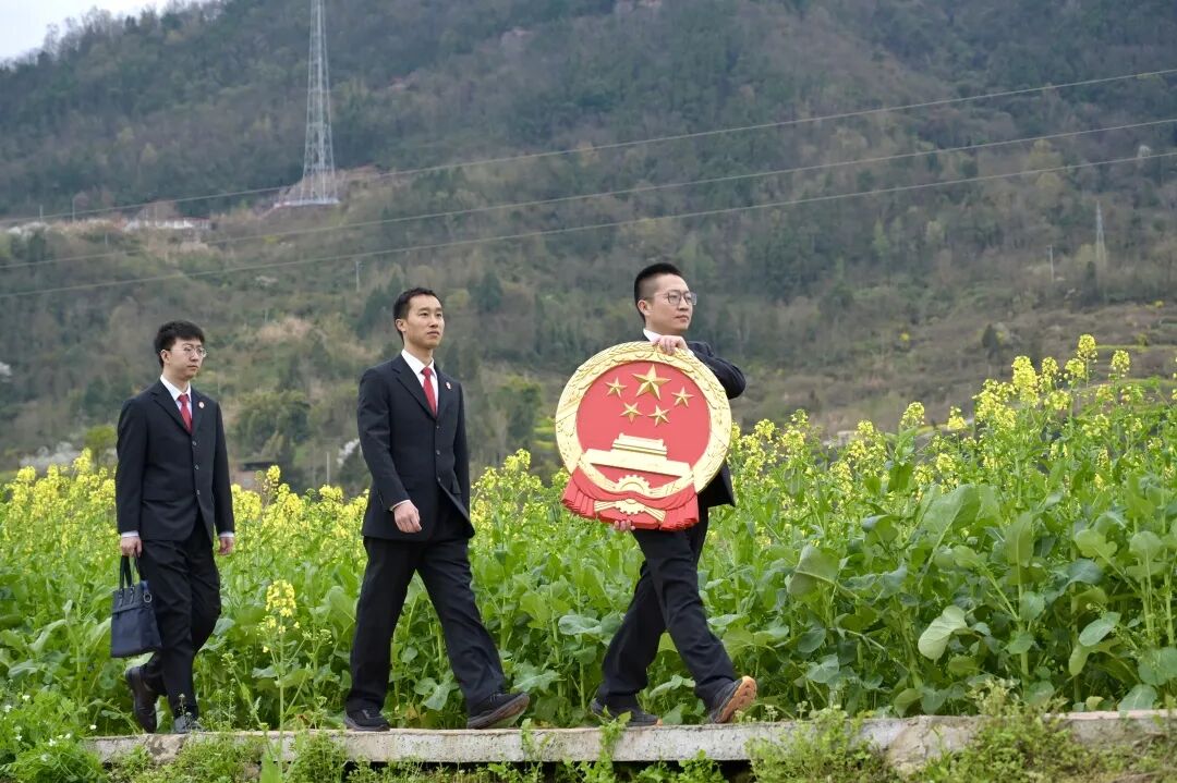 春分前后,正是农民忙着准备春耕的时候。法官们背着国徽,穿过金黄的油菜花田,走向田间地头和农家院落。国徽扛在肩上,责任记在心里,法槌在春风中敲响,公平在阳光下滋长,让司法服务实现“零距离”,让正义能够被看见、被触摸。