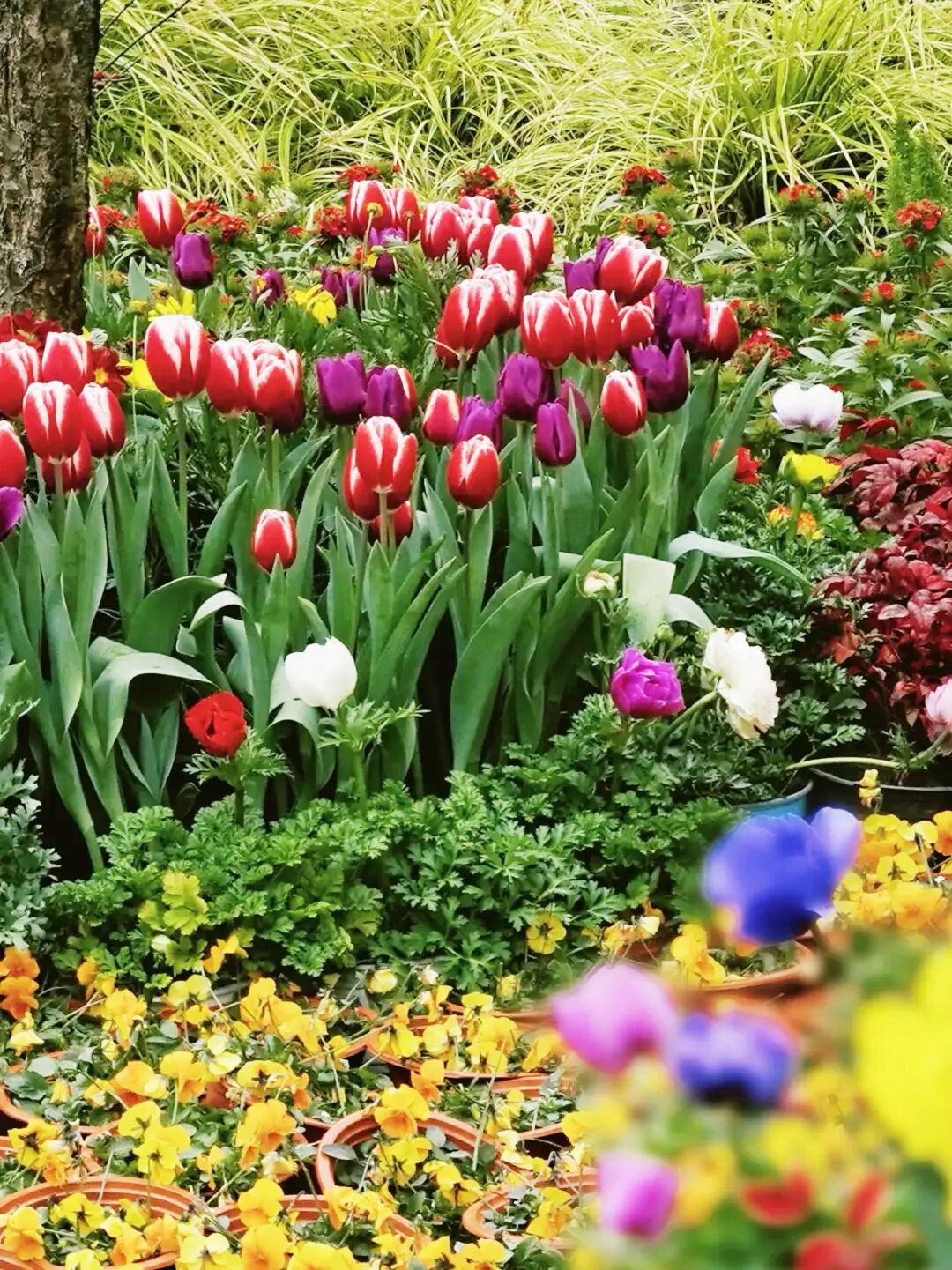 走进梅川公园的郁金香花圃,仿佛踏入了梵高的画作,红色郁金香像火焰般热烈。