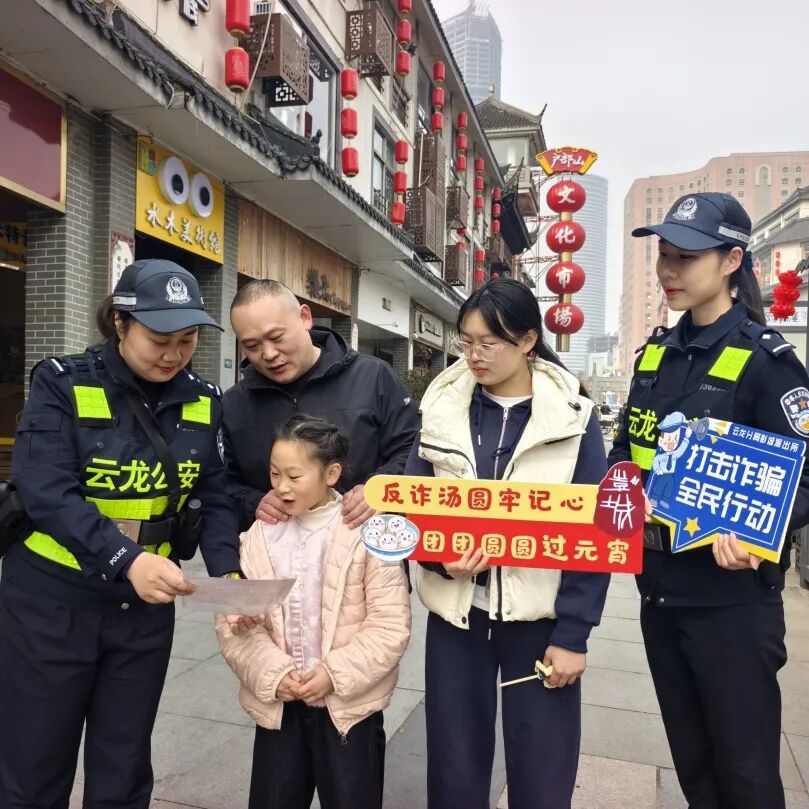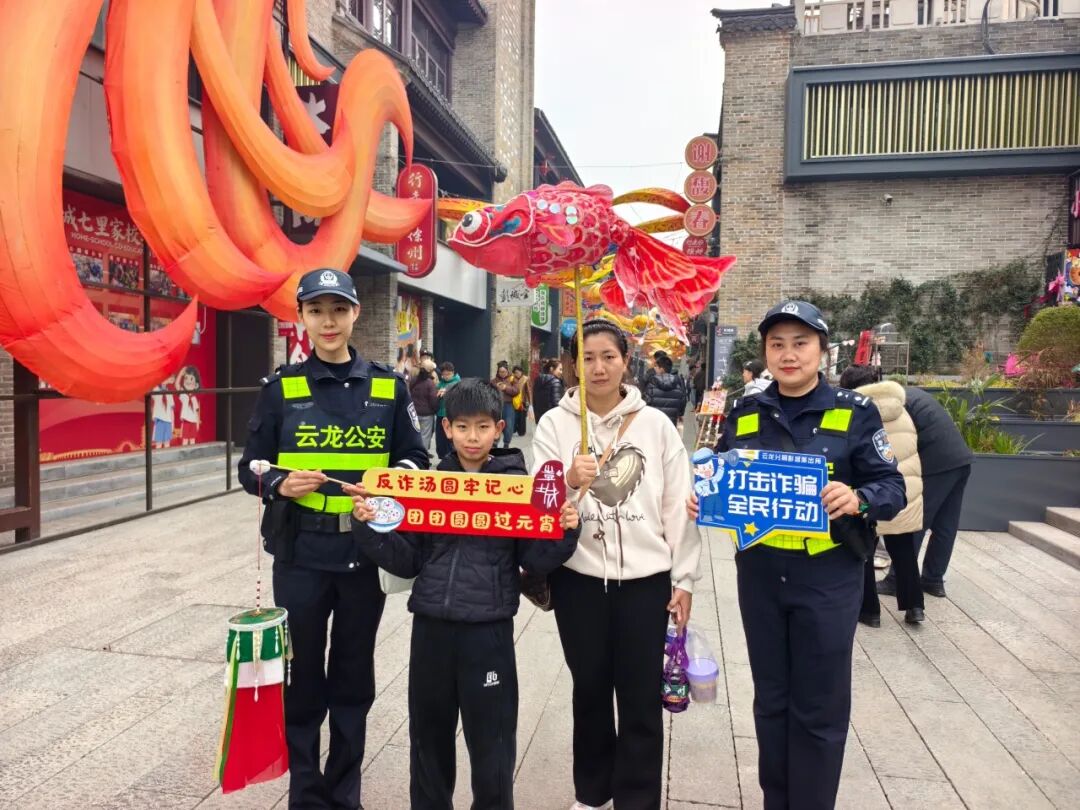 云龙分局彭城派出所民警走进户部山,将反诈知识融入街头巷尾,向游客和市民普及防骗技巧,让大家在逛景区时也能筑牢安全防线。