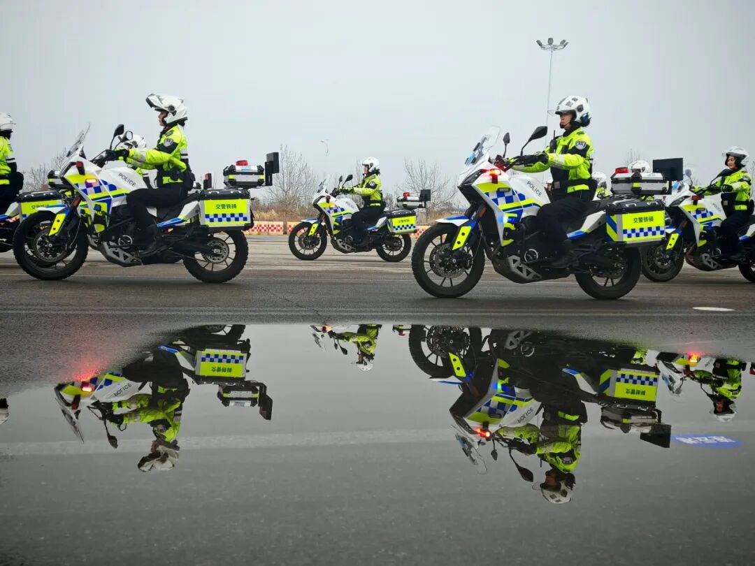 铁骑整齐列阵,镜面映照藏蓝担当;无人机空中巡航,镜头承载平安承诺。荧光绿的身影穿梭街巷,科技助力警务,用坚守筑牢防线,守护万家灯火与人间烟火。