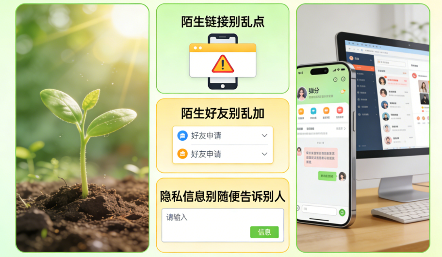 网络让生活更便捷,但别因大意掉陷阱!陌生链接别乱点,陌生好友别乱加,身份证号、手机号等隐私信息不随意泄露,在享受网络开放便利的同时,守好个人信息安全,不给不法分子可乘之机。