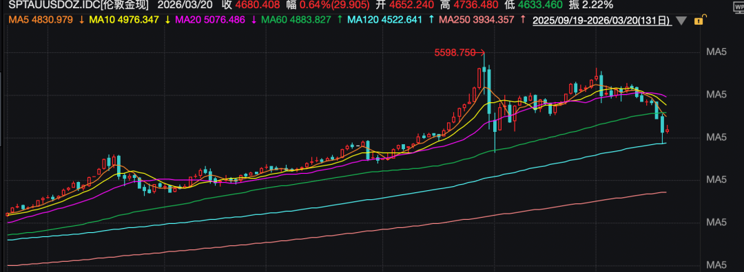 3月20日亚洲交易时段,金价出现小幅反弹,曾短暂突破每盎司4700美元关口,但截至记者发稿时,涨幅已有所收窄。