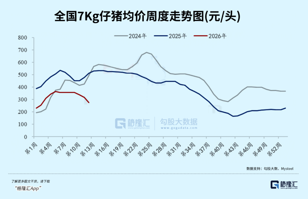 供需失衡与行业亏损下,市场悲观情绪蔓延,近期仔猪价格下跌,显示养殖户补栏意愿下降。
