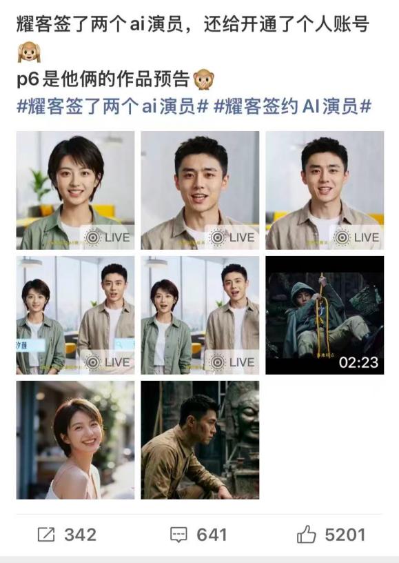 尽管事后多家短剧制作公司回应称“目前技术尚不成熟,AI演员与真人演员无法在同一图层呈现”,但耀客传媒却高调宣布签约两位AI数字艺人。