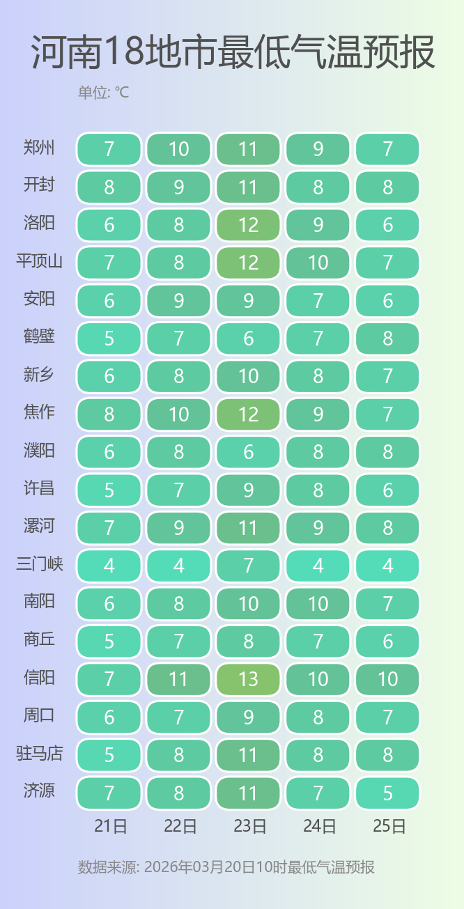 未来五天郑州的最低气温
