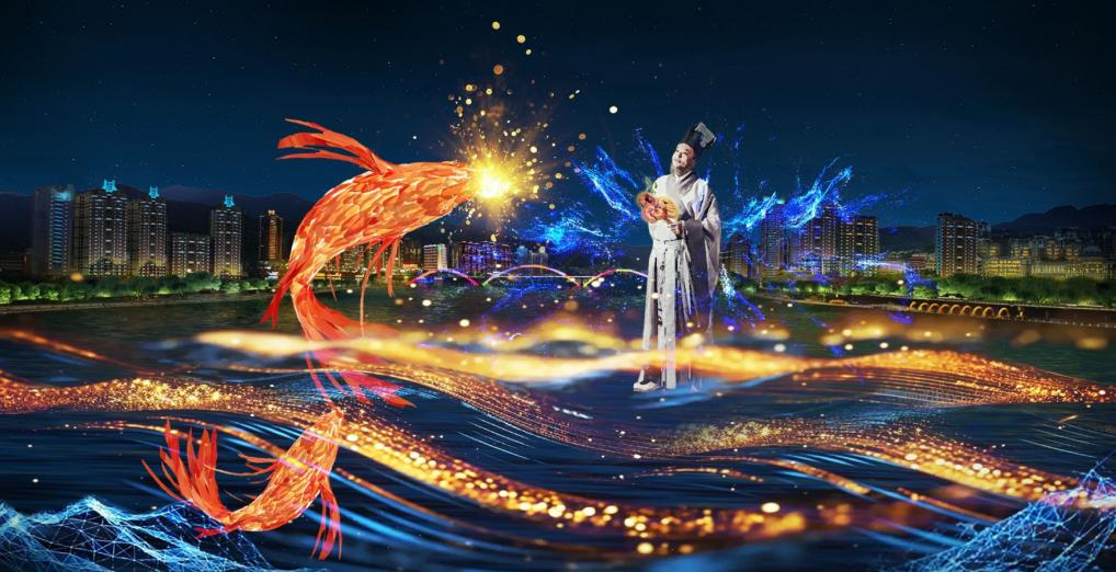 游客佩戴AR设备,在4.5公里长的瓯江上航行。历史名人“刘基”可能会“现身”船头,为游客讲述青田的故事;石雕纹样会在两岸的建筑上流转;华侨家书会化作流光溢彩的水幕光影,呈现出独特的视觉效果。