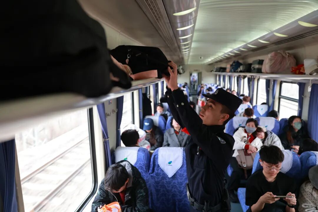 值乘这趟列车一年多,安童发现长途运行中,搭乘的小商户多,旅客常带大件行李,放置不稳或取放意外易砸伤人。他便和列车工作人员制定“上车引导、途中巡视、到站提醒”工作法,遇到力气小的旅客还主动帮忙取放行李,减少了行李砸伤事件,守护着列车承载的生计与发展分量。