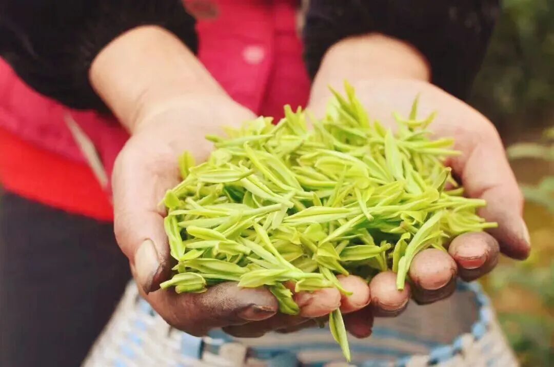 这些地方终年云雾缭绕,气温较低,因此高山新茶的开采期比别处晚一个节气。清明过后,四月芳菲将尽时,山上的茶芽才缓缓冒出,揽尽人间最后一抹春色。