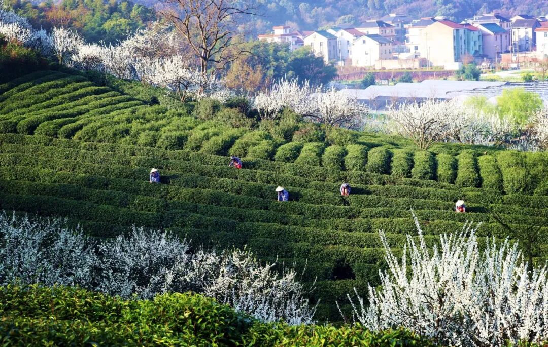 所前的茶树品种丰富,乌牛早、黄叶早、龙井43、鸠坑种等,将整座山染得郁郁葱葱。且这里开采期特别早,每年二月底三月初,茶山便热闹起来。