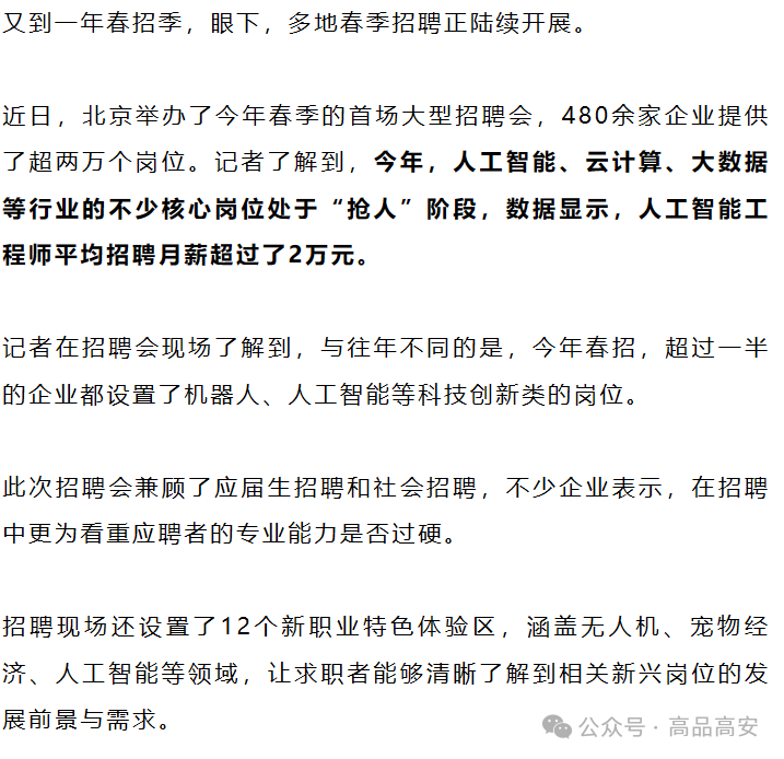 记者获悉,今年人工智能、云计算、大数据、智能硬件等行业的招聘需求持续增长,众多核心岗位正处于“抢人”状态。