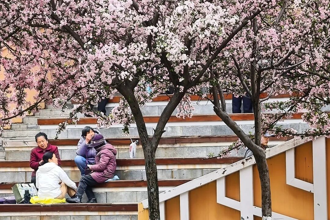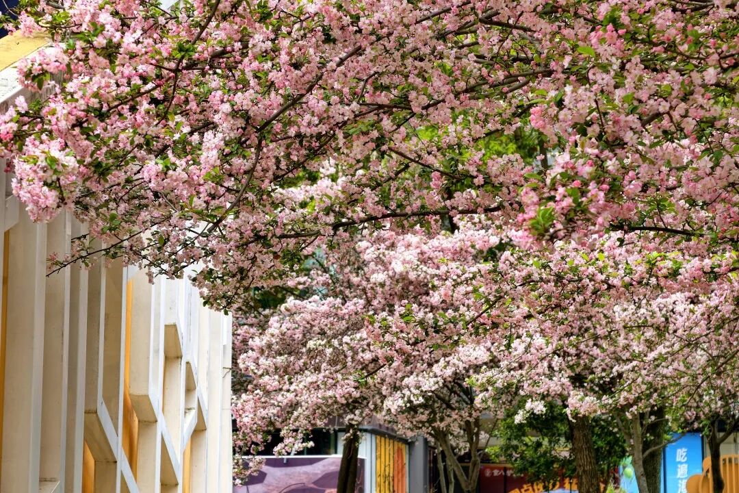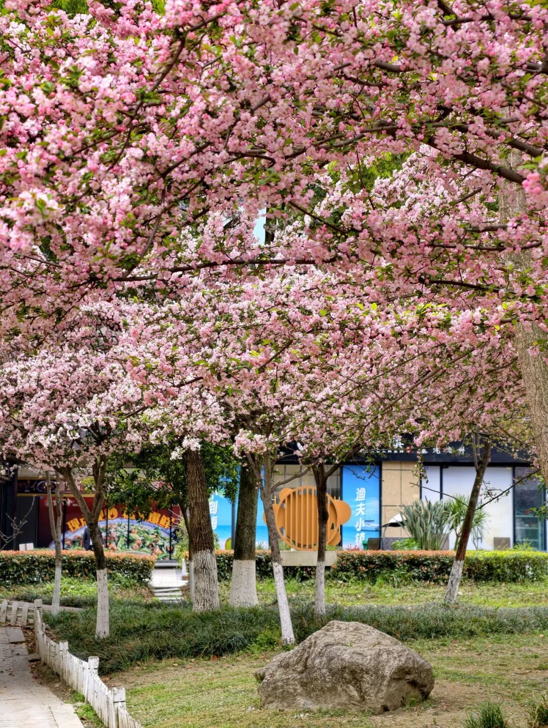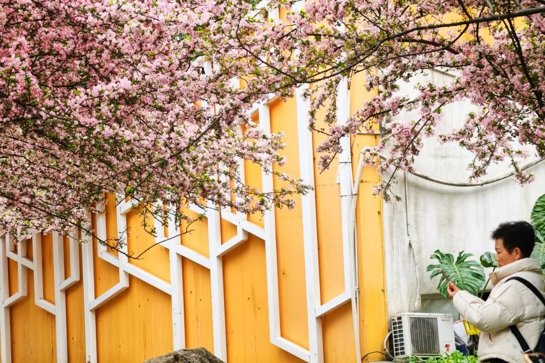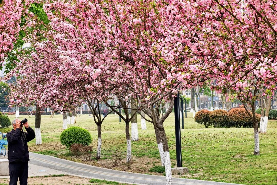 一树树粉红垂挂枝头,如霞似雾,早已吸引了不少市民游客前来打卡赏花。