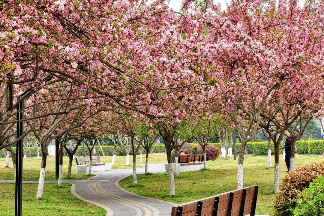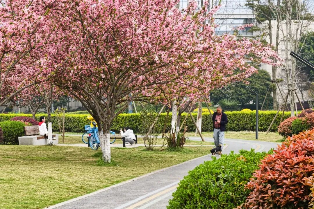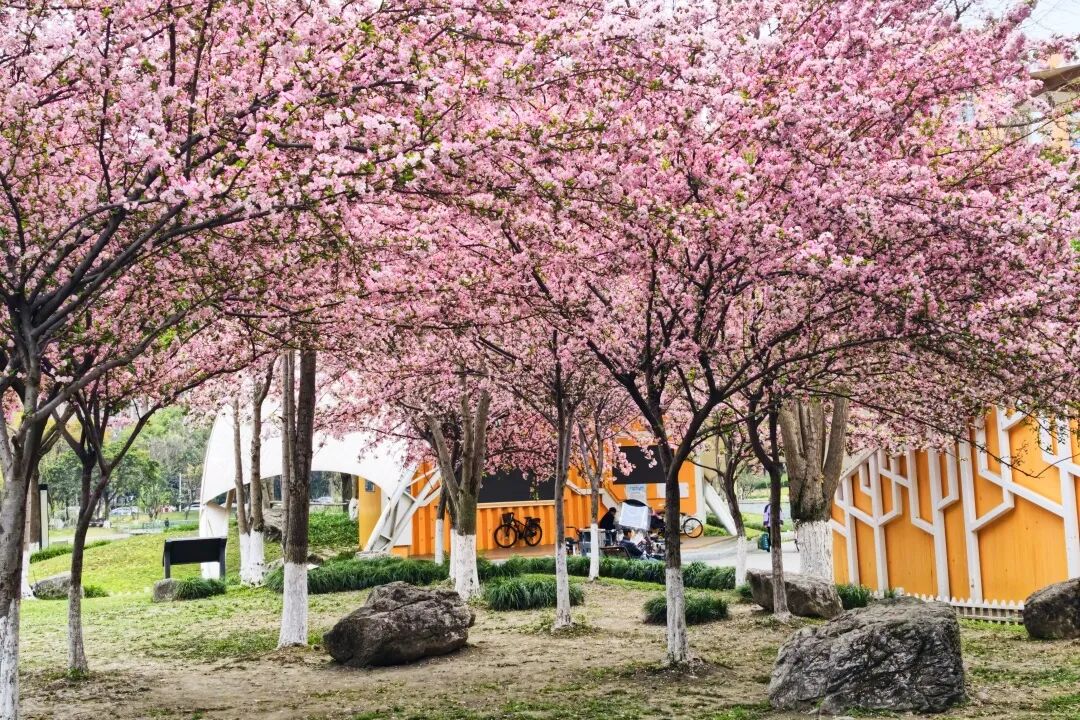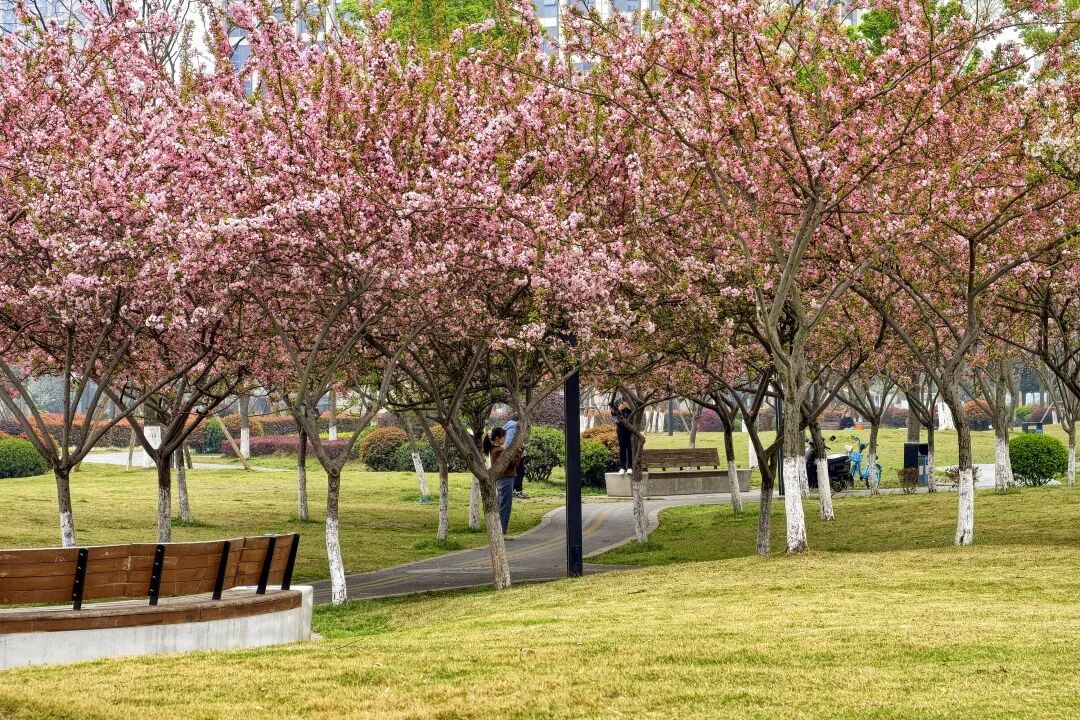 这里的美,适合慢下来品味。你可以沿着绿道骑行,任微风拂面、花瓣轻落;也可以铺上野餐垫,在花下晒太阳、发呆、聊天,无需匆忙,不必争抢。