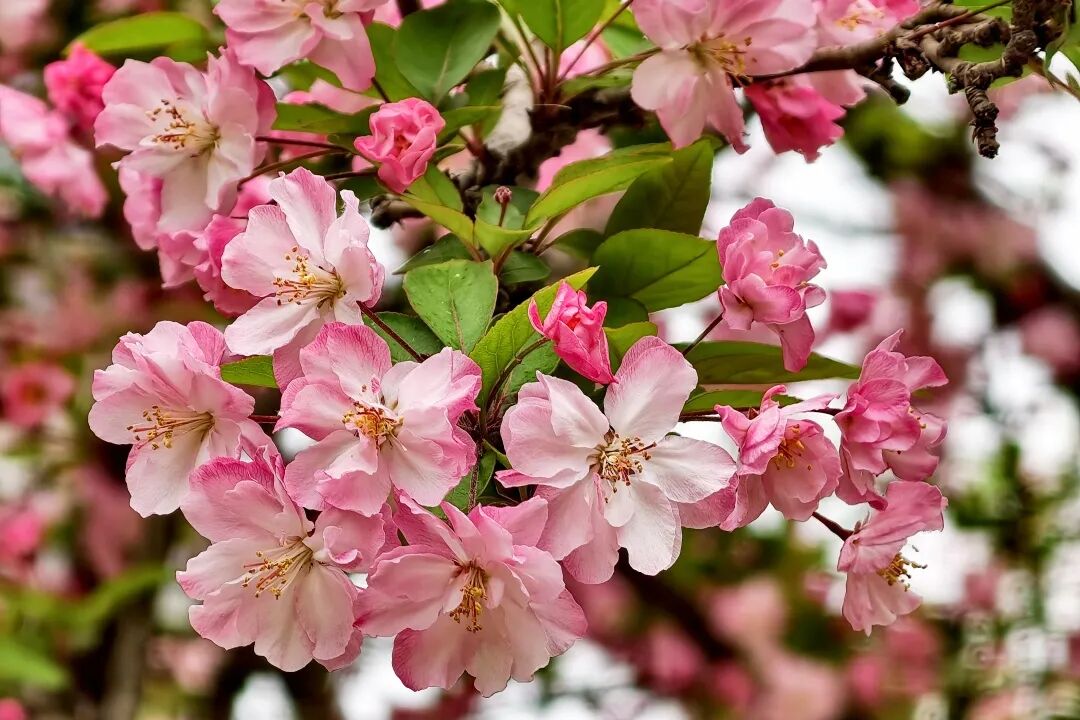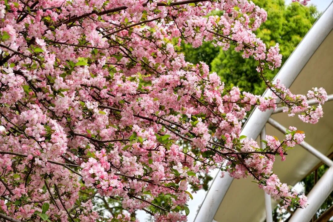 朵朵粉嫩的海棠缀满枝头,随手一拍,就是氛围感十足的春日大片。