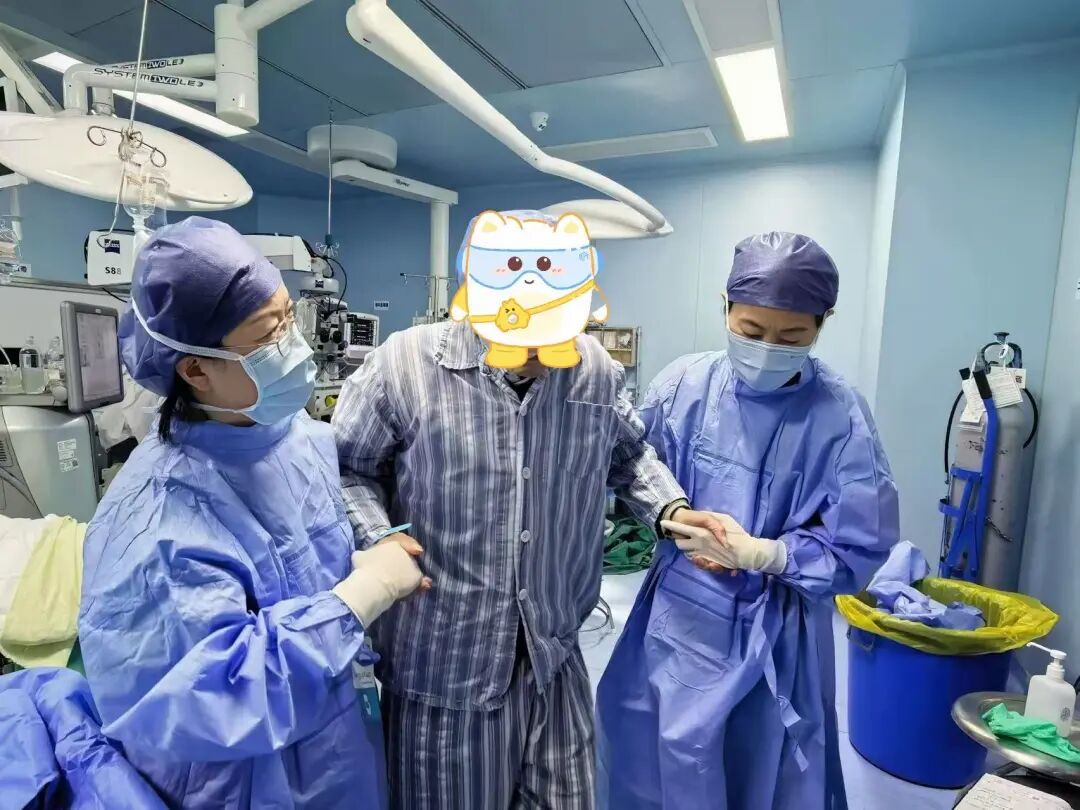 医生搀扶百岁患者下手术台
