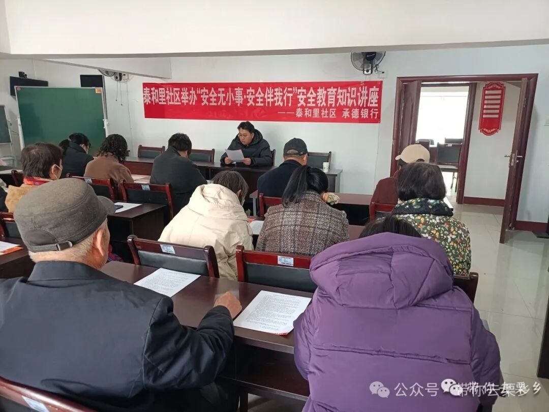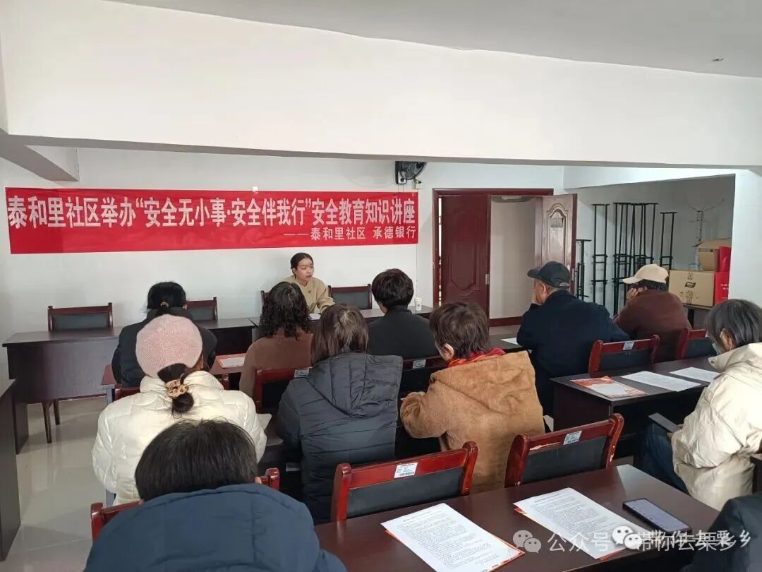 近日,为扎实筑牢社区消防安全屏障、增强居民应急处置能力,栗乡街道泰和里社区携手承德银行,共同开展了一场安全教育知识专题讲座。