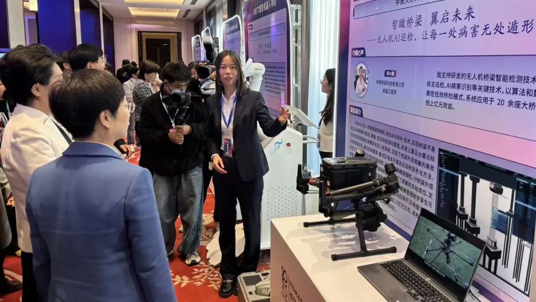 此外,她还主持研发了桥梁施工期与运维期无人机智能巡检系统、梁底轨道机器人巡检系统、螺栓智能巡检系统等机器人智能巡检系列装备,实现了远程控制、自动巡检、病害智能分析与报告自动生成的全流程智能化。这些成果已在文蒙铁路、漳汕铁路等多个项目中成功投用,显著提高了施工安全水平和管养智能化效率,取得了良好的经济和社会效益。