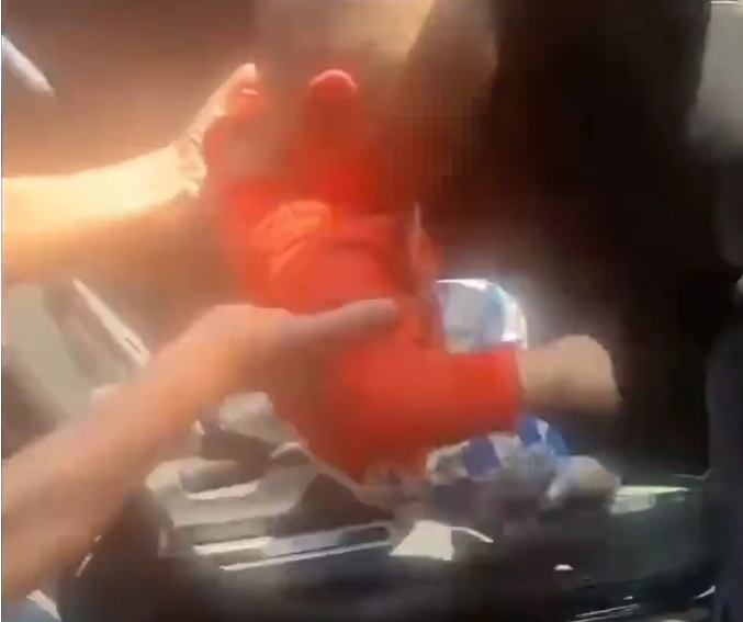 消防员到达现场时,孩子的脸涨得通红,衣服也被汗水湿透了。在得到家长的同意后,消防员马上破窗进入,打开后排车门把孩子救了出来。