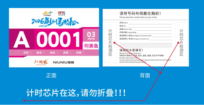 特别提醒:请正确佩戴号码布,不得遮挡、涂改;因个人原因折叠或撕毁号码布导致无法计时的,成绩申诉不予受理。