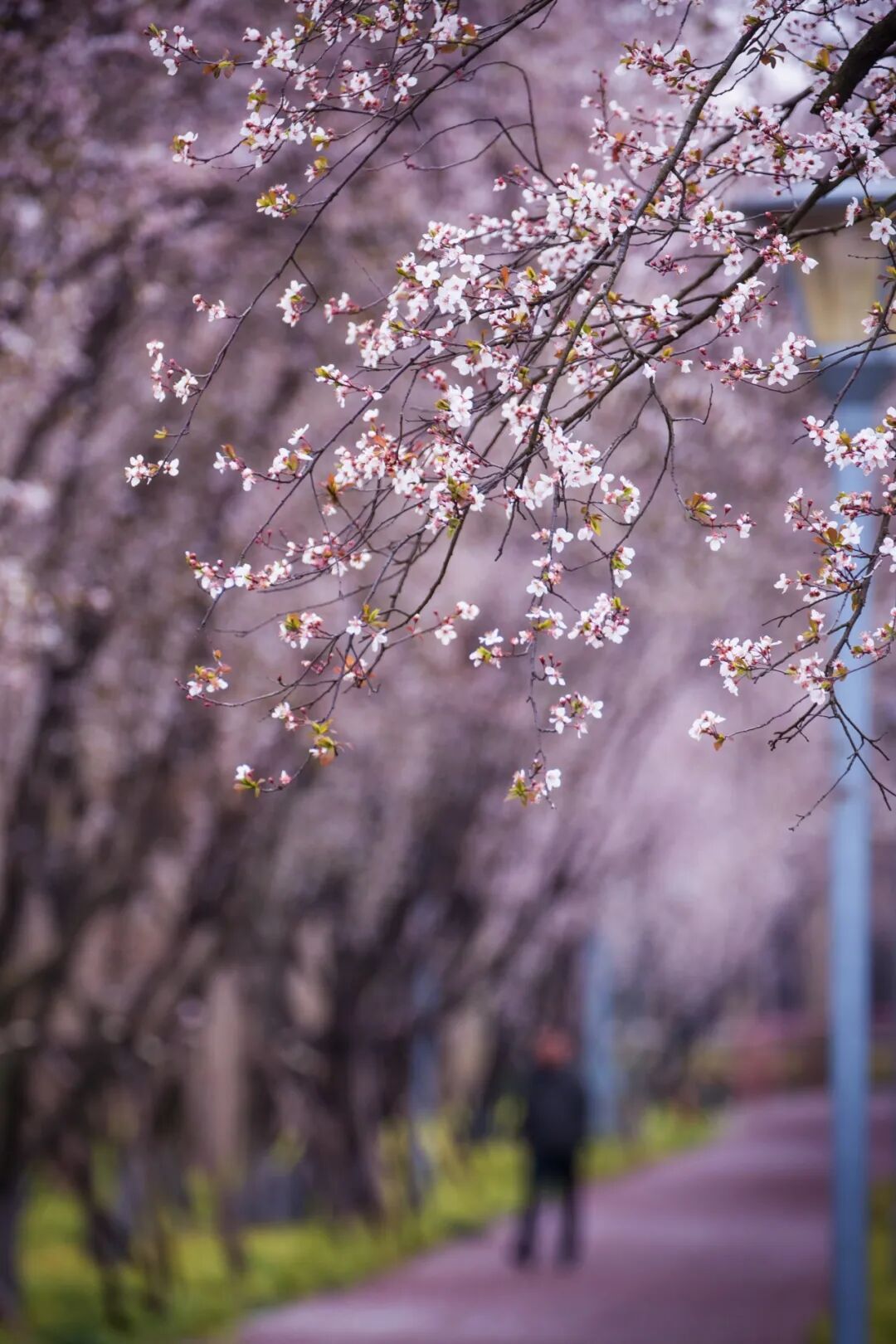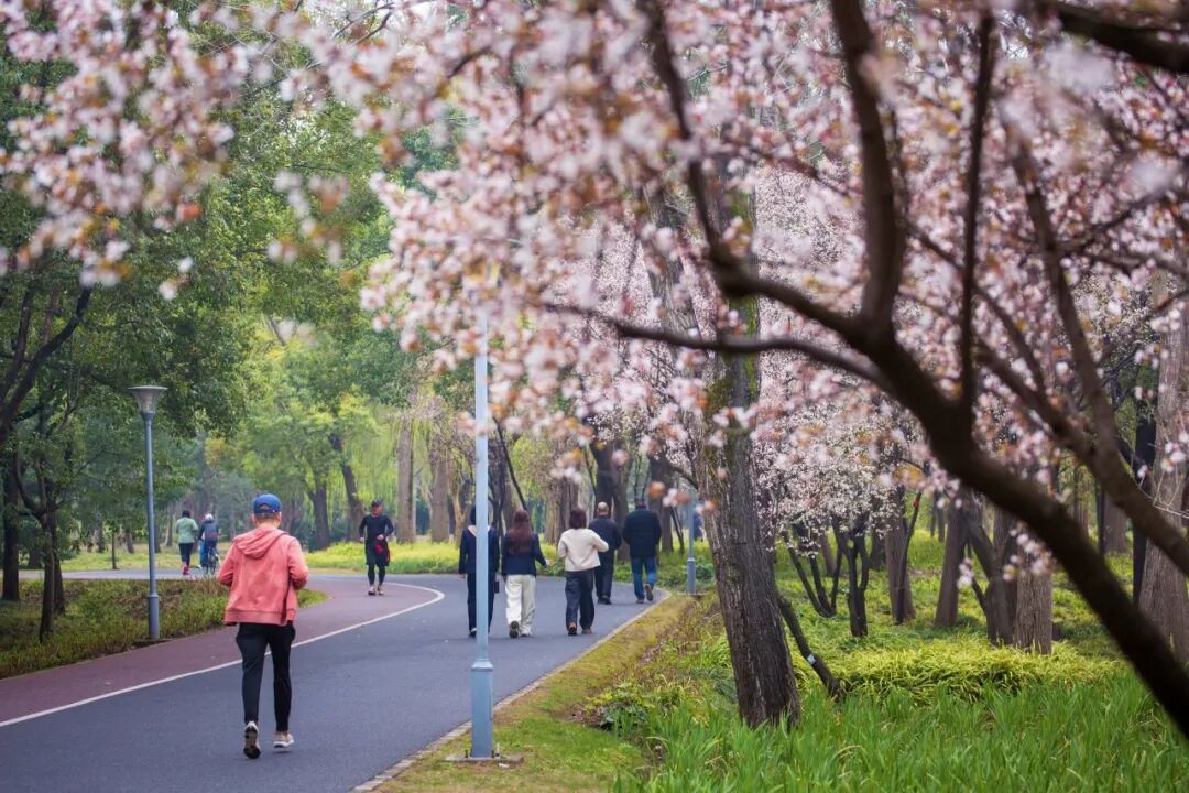 春风送暖,草木萌新,长宁外环生态绿道的“粉色大道”今年再度浪漫登场,眼下正是观赏的黄金时段。