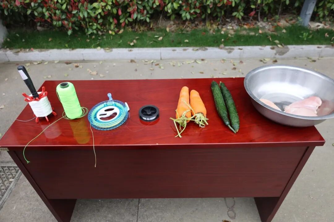 消防员提前准备了黄瓜、胡萝卜和鸡胸肉,并选用尼龙与聚酯纤维两种常见风筝线。实验前,消防员介绍了这两种线的特性,说明不同颜色风筝线适配的风筝大小,还指出若风筝与线的承受力不匹配,线材更易断裂。此外,多数风筝线采用编织工艺,绷紧受力时切割效果堪比刀具。
