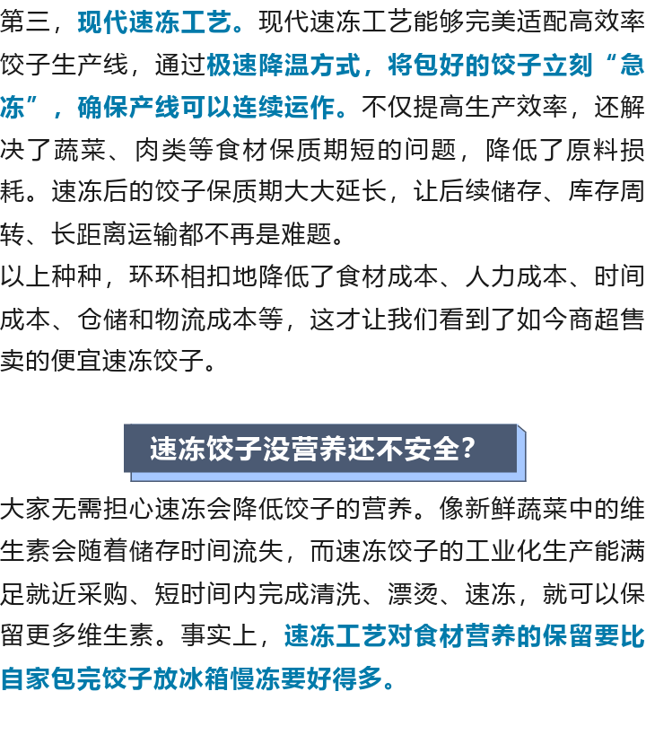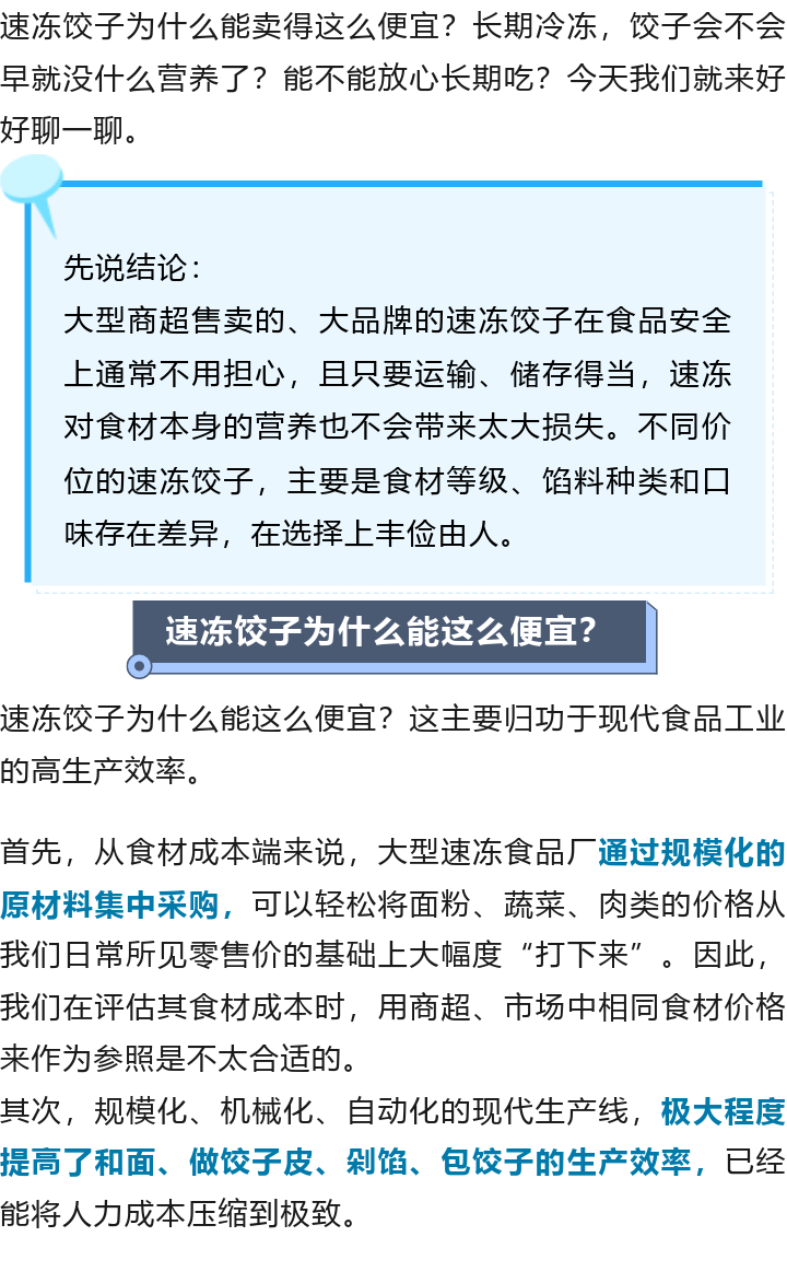 总之,在现代食品工业体系下,从正规渠道买的正规品牌速冻饺子可以放心吃。掌握以上挑选方法,速冻饺子就是平价又方便的美食选择。