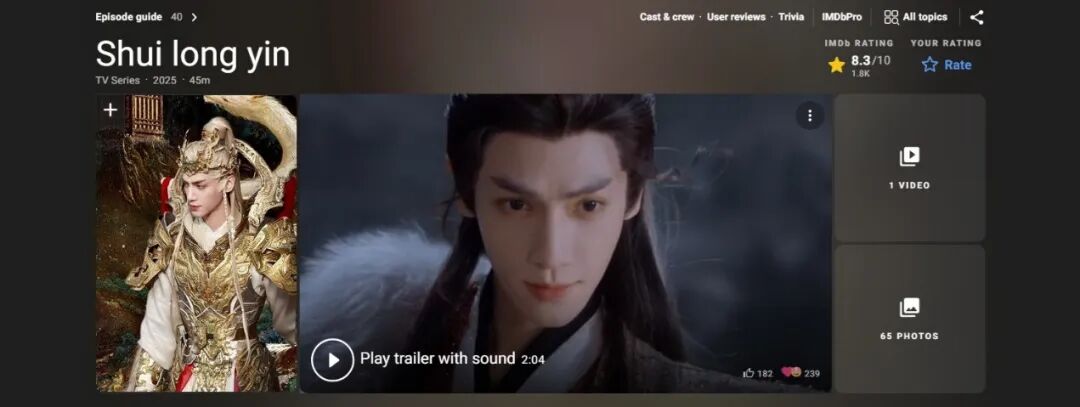 例如,芒果TV的《水龙吟》在IMDb上获得高达8.3分,显著高于豆瓣的5.7分,海外用户评价其为“一部引人入胜的奇幻作品”。这在一定程度上反映出不同市场在审美取向与评价标准上的差异。对于海外观众而言,这类融合玄幻设定与高浓度情感叙事的作品不仅具有吸引力,还更容易在跨文化语境中形成稳定的受众基础与用户黏性。