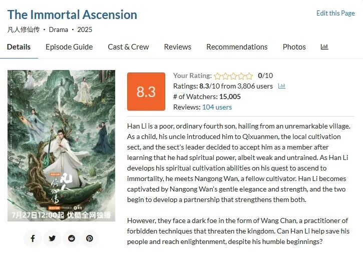 值得关注的是,随着仙侠、玄幻等子类型的不断成熟,古装剧在海外评价体系中的表现愈发突出,甚至出现“墙外开花”的现象。