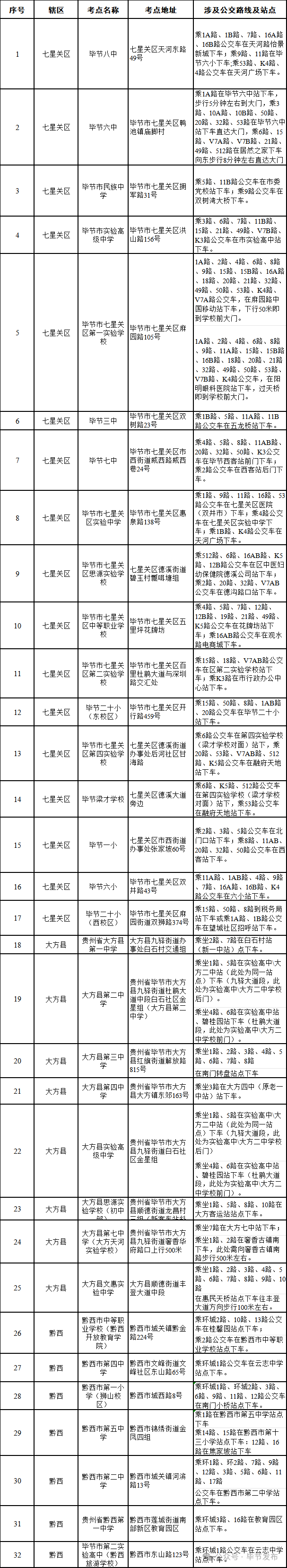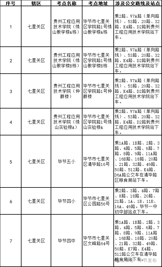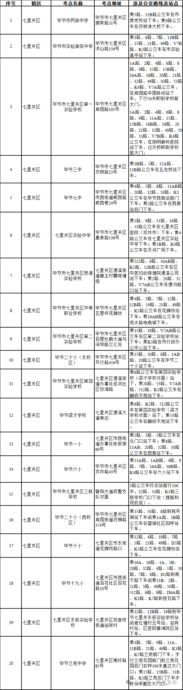 毕节市2026年事业单位公开招聘笔试联考考点地址及乘车路线(3月28日)