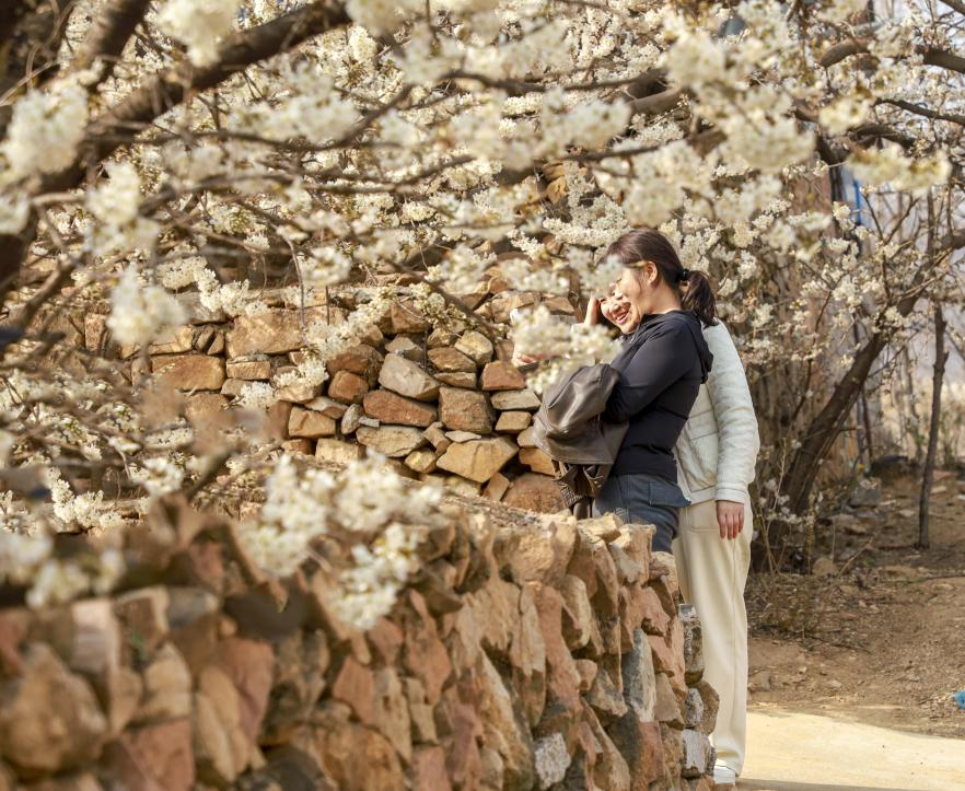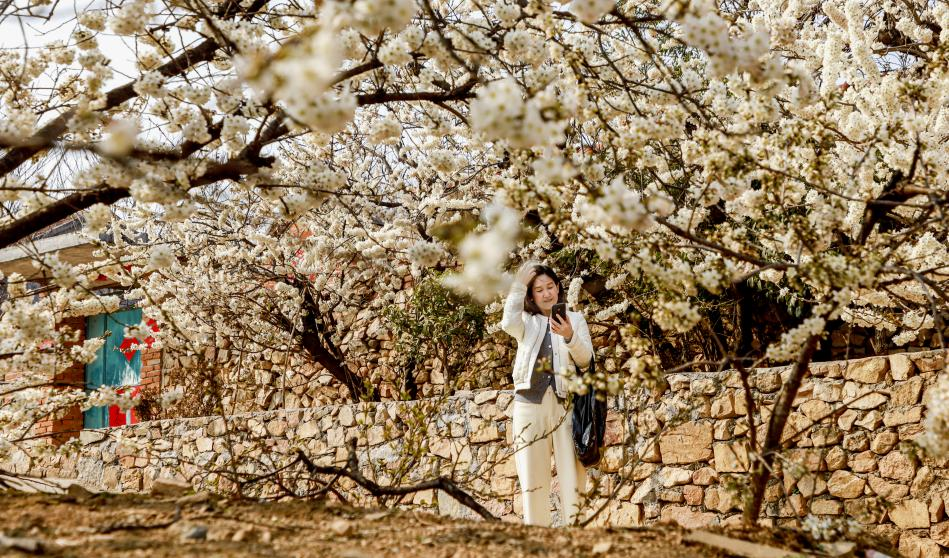 当和煦的春风,似细腻的笔触,悄然掠过日照的连绵山野,漫山遍野的樱桃花便竞相绽放。粉白的花瓣层层叠叠,将村落装点成如梦似幻的花海。花树依着山石、绕着屋舍,顺着坡地肆意舒展。烂漫的花瓣在风中轻轻摇曳,偶尔飘落肩头、发间。这满城的春意,吸引着市民与游客纷纷前来,共赴这场春日的花之盛宴,沉醉在温柔而诗意的氛围之中。(刘晓楠)
